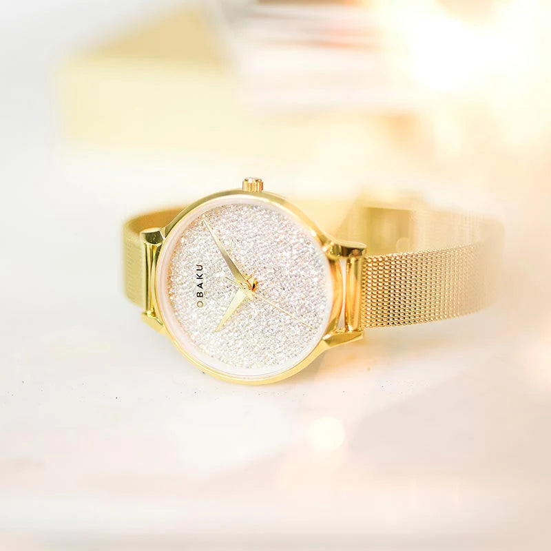 Obaku Stjerner is a sight to behold. Its Swarovski crystal dust dial beautifully shines and shimmers with each ray of light. The thoughtful design is underscored by a surgical stainless steel case. Both the mesh bracelet and case are plated with gold and hand-polished to perfection. The logo is uniquely stenciled onto the hardened crystal creating a stunning 3D effect. In Danish ‘stjerner’ means ‘stars,’ and this designer piece definitely lives up to its name.