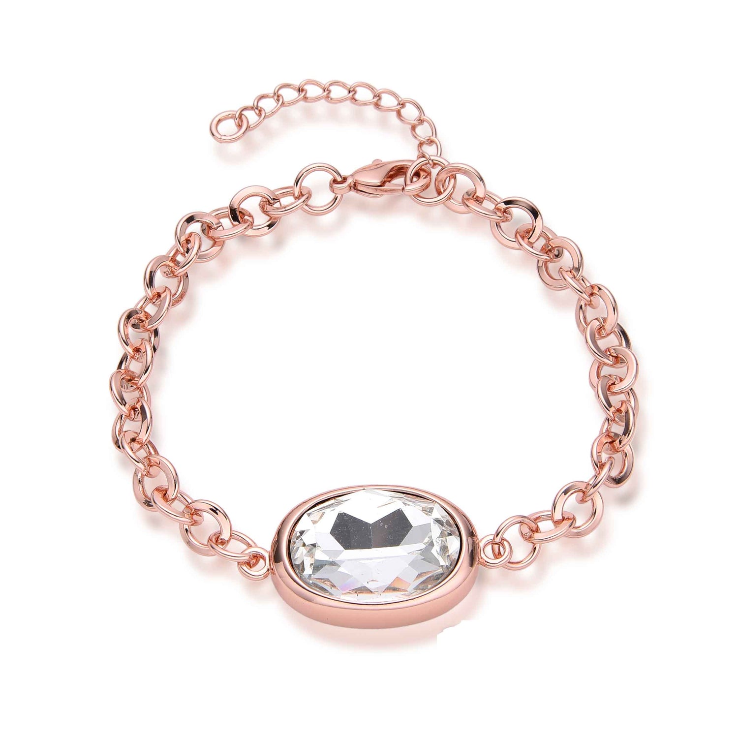 Rose Gold Bracelet with Large Links & Oval Crystal Charm