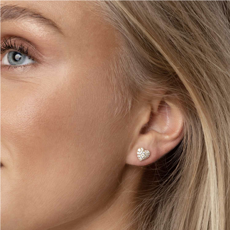 18k Gold Plated Earrings with White Zirconia, Loveheart Shape.